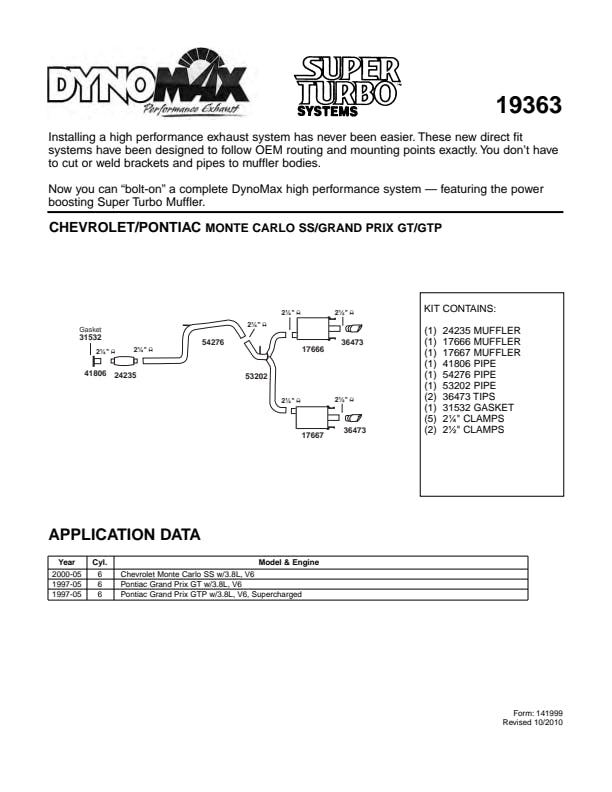 Dynomax Super Turbo 19363 Exhaust System Kit